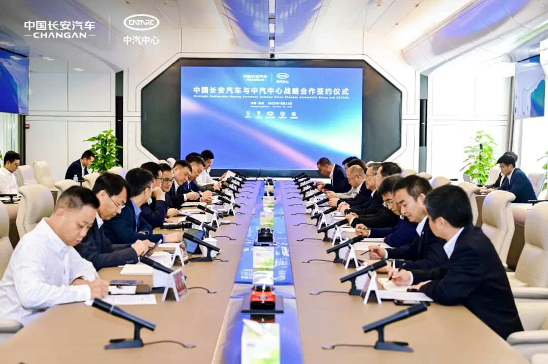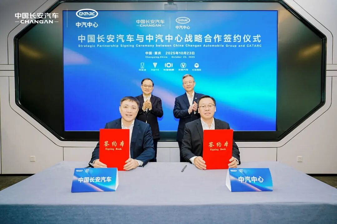 10月23日,中国长安汽车集团有限公司与中国汽车技术研究中心有限公司在重庆举行战略合作签约仪式。中国长安汽车党委书记、董事长朱华荣与中汽中心党委书记、董事长安铁成共同出席并见证签约。中国长安汽车党委常委、副总经理邓威与中汽中心党委委员、副总经理周华代表双方签署协议。