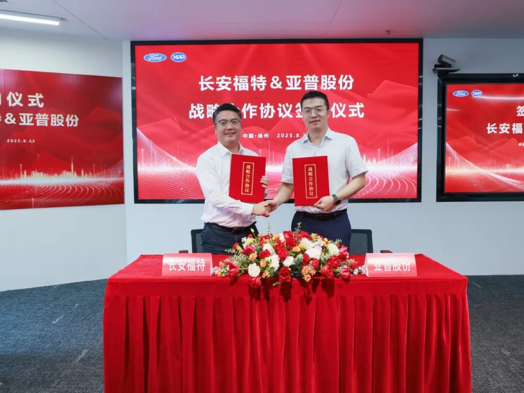 近日,长安福特汽车有限公司与亚普汽车部件股份有限公司在扬州举行了战略合作框架协议签署仪式。双方基于在各自领域的深厚积累与优势资源,旨在通过本次战略携手,在汽车零部件供应链、技术合作、供货保障、商务合作等多个维度开展深度合作,共同应对行业变革,提升产业竞争力,为消费者带来更优质的产品与服务。